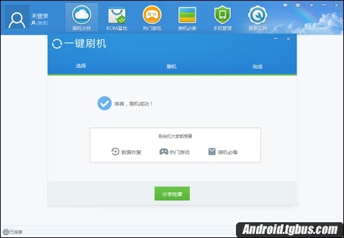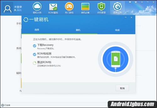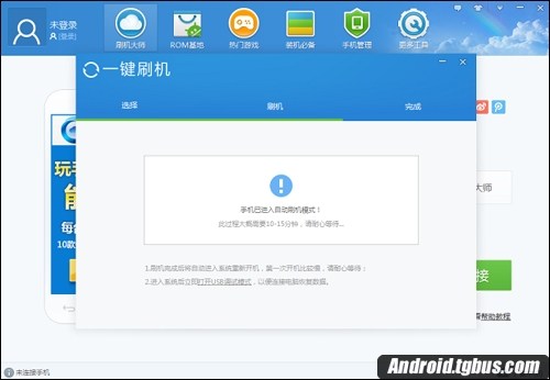 6、進入“一鍵刷機”模式之後,接下來設備進入自動刷機模式,大概5-15分鐘後就會刷機成功,請大家務必要有耐心。