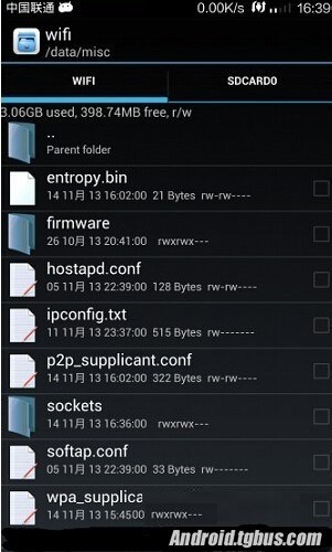 2.安裝了RE管理器之後,我們再使用RE管理器或es文件浏覽器進入data/misc/wifi目錄,如下圖所示:
