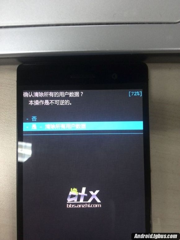 1、關機狀態下,長按 音量上+音量下+電源鍵 三鍵即可進入recovery界面,刷入ROM之前建議清空用戶數據,即 data/ 下文件(請實先務必做好備份),相當於恢復出廠設置,操作方法是:光標移動到 “清除數據/恢復出廠設置”(音量上下鍵控制光標),電源鍵確認。