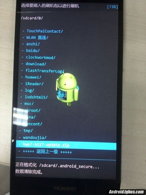 4、選擇好刷機包,按電源鍵確認開始刷機,過程大致如下