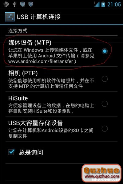 2:然後將手機的ADB調試翻開,正確裝置你的手機的USB驅動,USB 計算機銜接挑選MTP形式(如圖)!