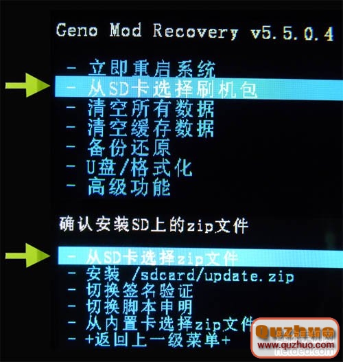 5:回來主界面,按音量鍵挑選【從SD卡挑選刷機包】然後再挑選【從sd卡挑選zip文件】,然後找到方才復制到手機sd卡根目錄下的zip格局的root包(比如:XXXXXX.zip),然後再挑選【是的-裝置 XXXXX.zip】,按電源鍵承認