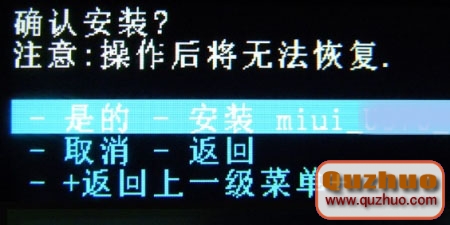 5、等待Recovery自動刷入ZIP格式卡刷包,刷機完成後Recovery回到主界面,選擇重啟系統。手機第一次開機較慢,請耐心等待!
