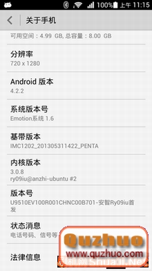 - 移植榮耀四核EmotionUI最新版,自定義版本號為B701,Android系統版本為4.2.2