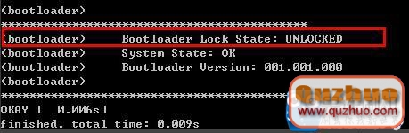 如果顯示“BootloaderLock State: UNLOCKED”,表示手機已經解鎖,可以進行刷機操作