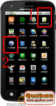 1.下載 Gingerbreak v1.2 和 R.E管理器(R.E管理器說是用來查驗是否ROOT成功的,一起也是用來修改和刪去體系文件的) 兩個軟件,移至手機閃存或SD卡(用USB數據線讓其ME860與www.shuleba.com電腦相互銜接,ME860屏幕最頂使命告訴欄拖動,點擊 USB銜接 ,挑選 USB大容量存儲 ,點擊斷定),在手機裡進行裝置。