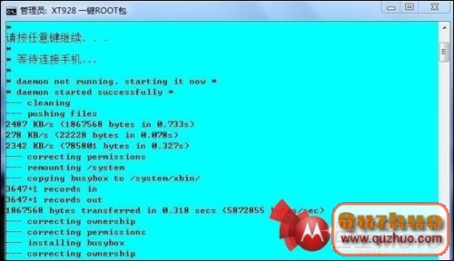 按照提示操作完成。你的摩托羅拉XT928一鍵ROOT就成功,這樣就獲取了ROOT權限。