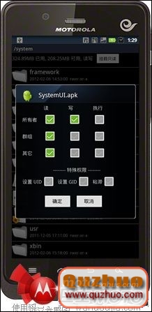 三、將你剛下載好的附件復制到system下,並且修改權限如圖:不知道改成什麼權限的,先在APP裡看一下原文件權限,改成一樣就行了,否則無限重起,改好後復制到APP下覆蓋原文件,保險起見,可先復制原文件到內存卡