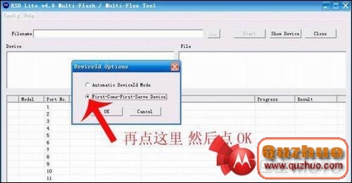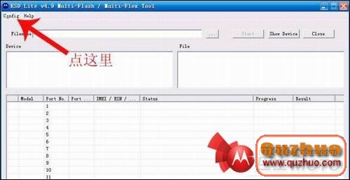 首先是打開已經安裝到www.shuleba.com電腦上的刷機程序RSDList程序,然後在安裝下面圖片顯示出來的紅色箭頭進行操作: