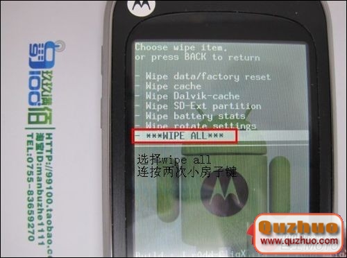 會出現此界面,然後選擇末尾項:“Wipeall”連按兩次小房子建
