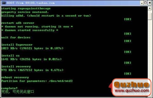 5.如果出現了一下圖片的文字,就代表摩托羅拉ME501 ROOT成功了