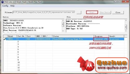 4、點擊start,開始刷機,下面會出現一個百分比的進度顯示。