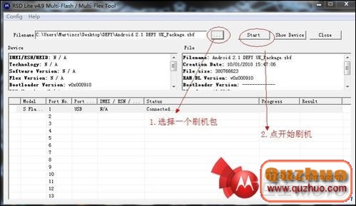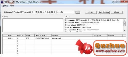 4:選擇DEFY_Android_2.1_UK_2.51.1_With_2.21.0_Boot點擊start(如圖)