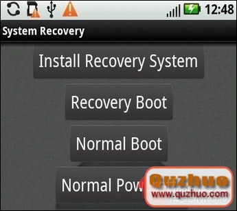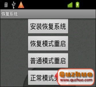 安裝後點擊菜單中的“安裝恢復系統”然後彈出權限提示。點確定然後點擊恢復模式重啟就可以進入自定義的recovery界面。