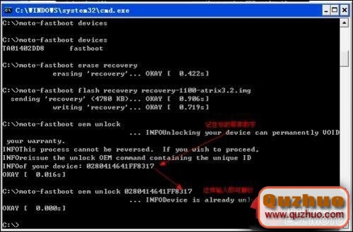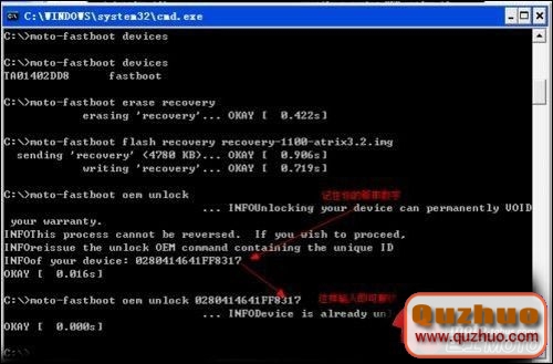 特別注意:moto-fastboot解鎖命令