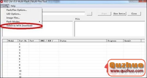 切換之後的圖就是這個樣子的,和原先的RSD界面稍稍有些不同,而這個時候,您才可以使用這個mtk界面來進行刷機。