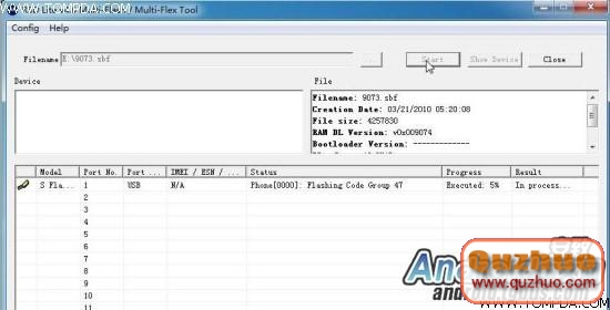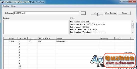 7.按上圖鼠標位置按鈕,找到放置SBF文件的位置,選中,確定,RSD界面如下,點Start: