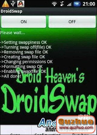 DroidSwap是用來解決僅配備256MB RAM及以下的安卓手機,運行太多應用程序造成後台軟件自動關閉、運行不流暢及卡等現象,尤其適合HTC G1(192MB RAM)、G2和G3(288MB RAM)、華為U8500(256MB RAM)等運行內存較小的安卓手機其他也可使用。