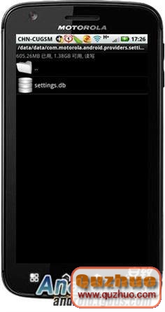 其次,用RE進入/data/data/com.motorola.android.providers.settings/ ,為安全起見,我們最好先給setting.db做個備份。