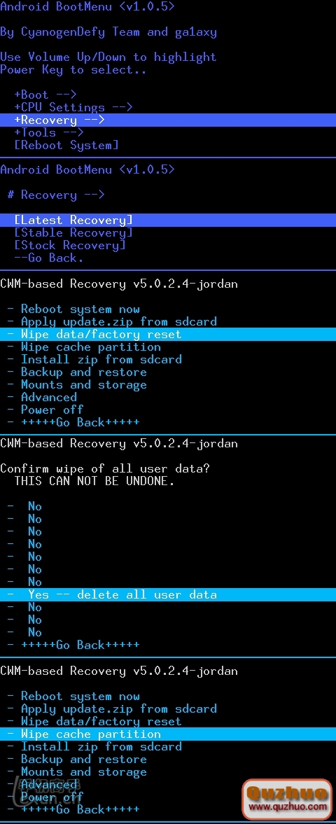 依次執行選擇並確認(音量鍵選擇,電源鍵確認)