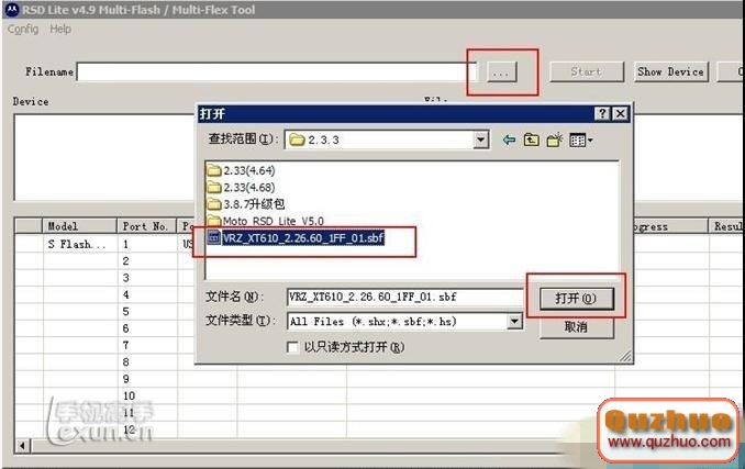 RSD識別你的手機,在RSD界面選擇打開2.26.60SBF③ 底包,開始刷機。