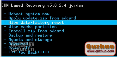 wipe data/factory reset;