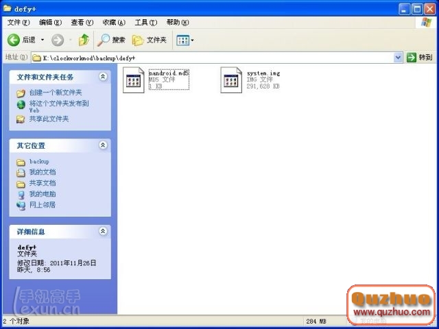 將nandroid和system.img復制進defy目錄下