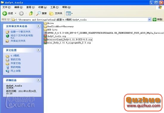5、下載完成之後只需要將刷機工具包defy+_tools.zip解壓即可,4.0固件包和2.3刷機包