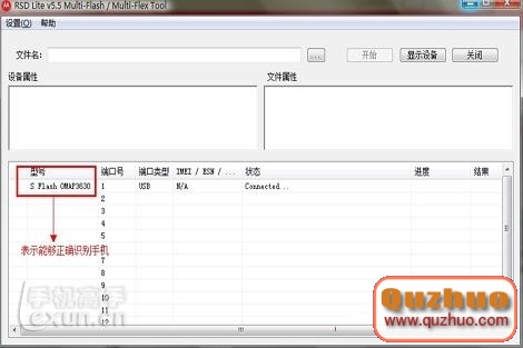 打開RSD刷機軟件。如果手機可以被識別的話會有如下手機信息顯示。
