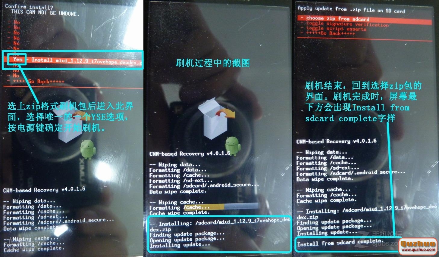 請到論壇或者網上下載最新版本的MIUI或CM7的刷機包rom(注意,是zip格式,不解壓的)