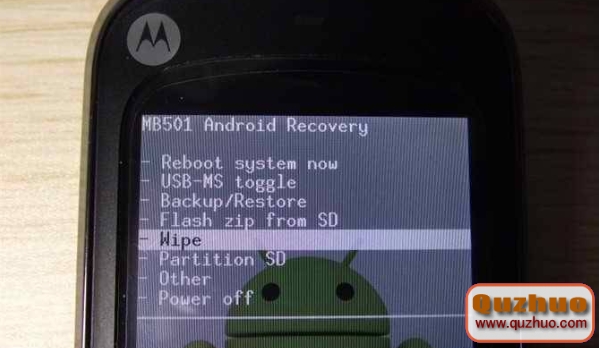 按音量鍵調整光標位置,將光標移動到第五項“wipe”上面,然後按房子鍵確認