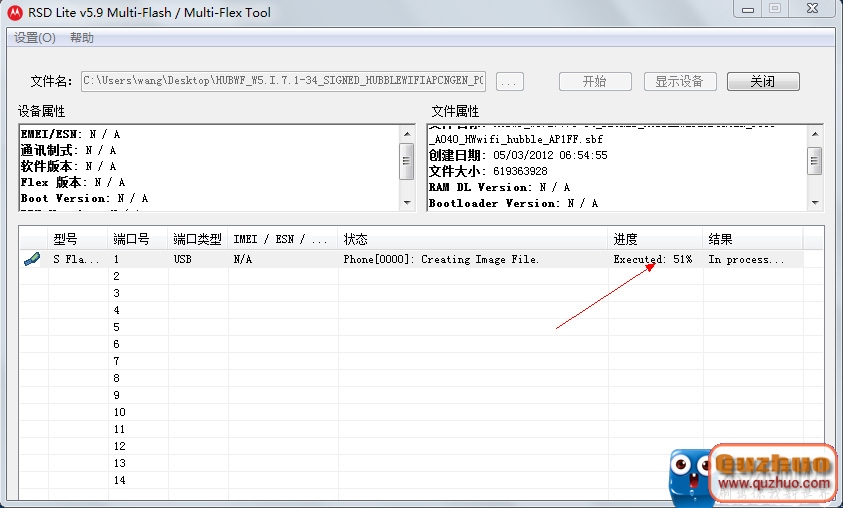 第二步,打開RSD刷機工具,此時會看到RSD工具的USB欄已經識別了XOOM。