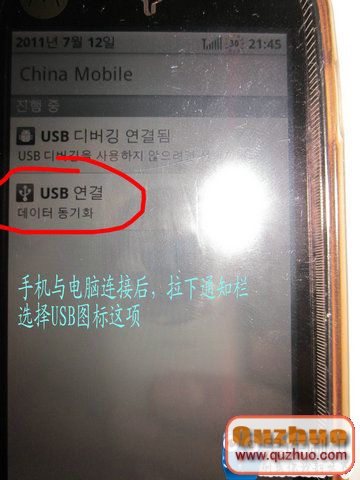 3、選擇手機USB模式到門戶和工具:拉下手機通知欄——選擇USB圖標項——選擇第一項