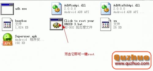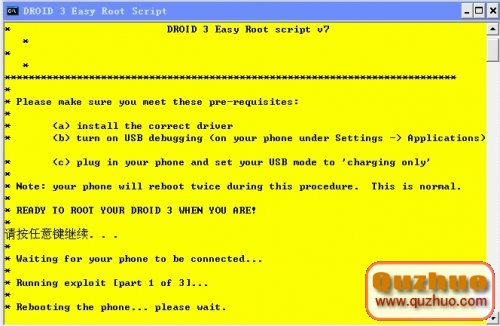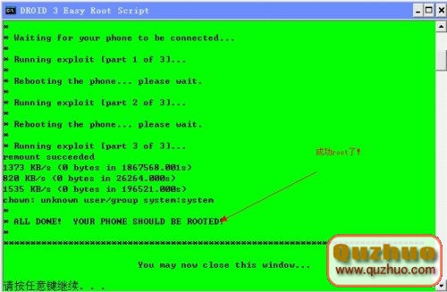 下載droid_3_easy_root_script_v7.zip,解壓之後,雙擊裡面的 bat 文件,即可成功ROOT