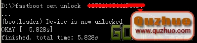 6、輸入:fastboot oem unlock XXXXXXXXXXXXXXXX(上面復制得到的XXXXXXXXXXXXXXXX)