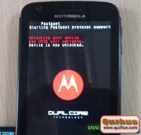 看看手機界面,是不是提示:Device is now unlocked了?