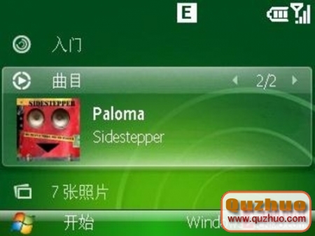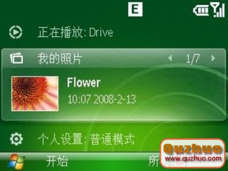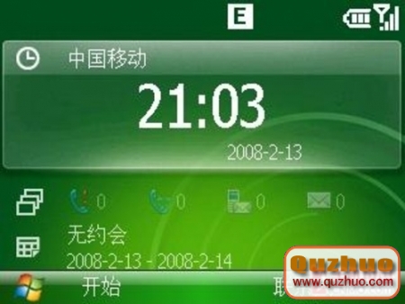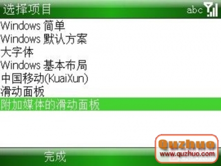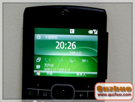 WM6.1下的Q8最容易看的出的提升就在於漂亮的滑動主題,新Q8的“設置——主屏幕——主屏幕布局”中多處了兩款新主題:“滑動面板”和“附加媒體的滑動面板”,選擇這兩款主題後,Q8的待機桌面會有很漂亮的半透明效果並伴有流暢的動態效果。