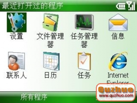 升級後的開始菜單和以往有了很大不同,用戶按下“開始”後彈出的是“最近打開的程序”,而不是以往的所有程序。用戶可以通過按手機左鍵進入所有程序界面。當然,如果不喜歡這一改變的話,大家也可以在“設置——主屏幕”中將其關閉。