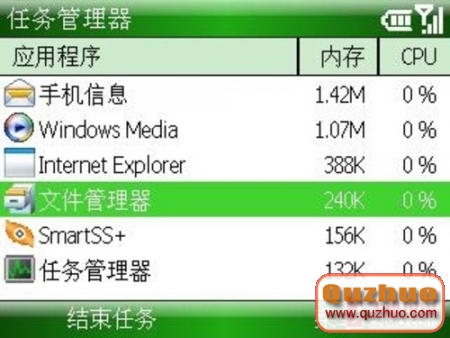 雖然還是不能直接關閉程序,但WM6.1的任務管理器明顯要比以往強大的多,新的任務管理器可以顯示後台程序占用的內存和CPU資源,並可以讓程序按照內存和CPU使用率來排序。此外,新資源管理器還將“結束任務”直接安置到了左鍵上,操作更為便利。