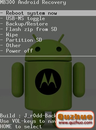 4.完後再進入flash zip from sd執行MB300_radio.zip,完後選“reboot system now"。手機會自動重啟,一重啟,馬上按住