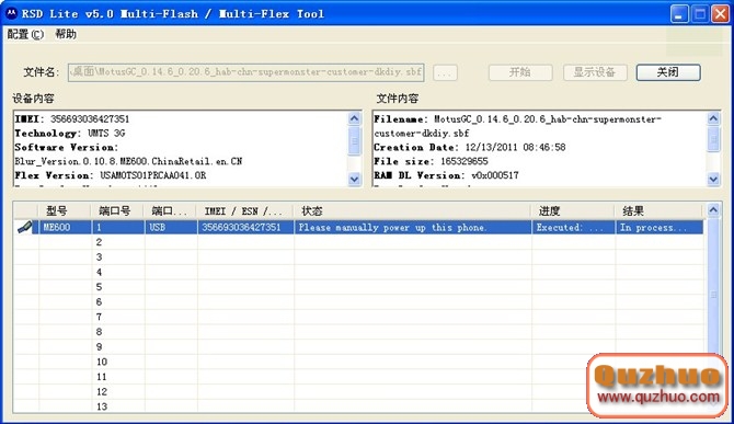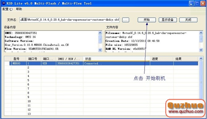 1.下載刷機工具 下載工具鏈接 2.打開RSD,按下圖設置 點OK後,重新啟動RSD。 3.進入bootloader模式 關機後,同時按住