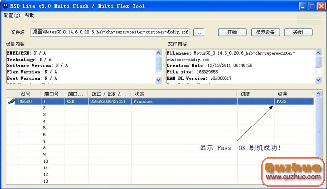 6、顯示 【Pass 】即刷機成功!