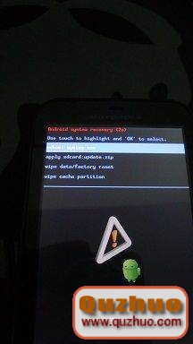 選擇 wipe data/factory reset那一項,然後點屏幕左下角的OK,這時屏幕會問你yes 還是 no 點yes那一項 然後再按ok 就會如下圖開始wipe:
