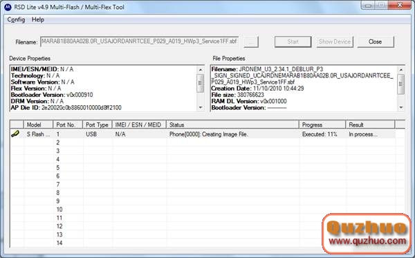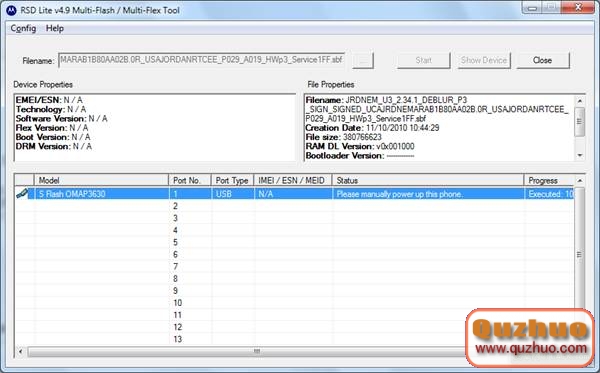 點最上面的按鈕(上圖的紅圈處),選擇一個sbf文件,也就是要刷的rom文件,然後點Start開始刷機。
