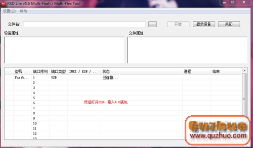 2:然後在剛才解壓出來的rsd工具包中,找到rsd.exe,然後雙擊打開RSD軟件,www.shuleba.com電腦端RSD顯示