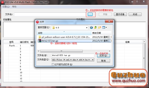 4:然後按照下圖中的畫紅方框的地方顯示的一樣,點擊那個“... “按鈕,然後選擇相應的刷機包,這裡選擇的是4.0的底包,也可以選擇其它的,根據自己的實際情況來定