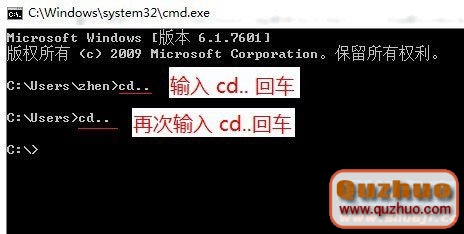 再次輸入:cd..回車 直至屏幕出現下圖: