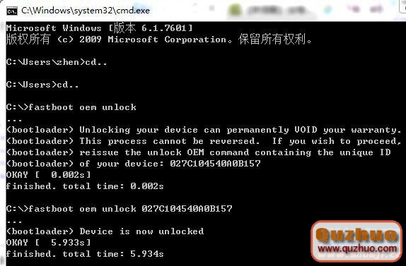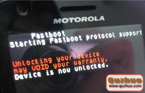 出現如圖字樣,顯示已經解鎖Bootloader成功!手機屏幕此時如下圖: