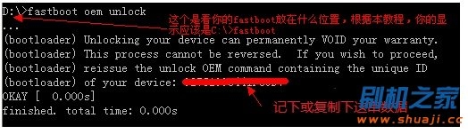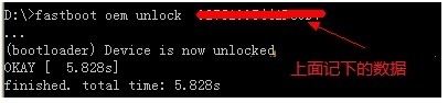(8)輸入:fastboot oem unlock XXXXXXXXXXXXXXXX(上面復制得到的XXXXXXXXXXXXXXXX)