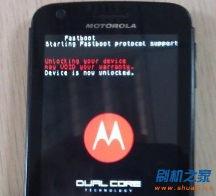 (9)看看手機界面,是不是提示:Device is now unlocked了?